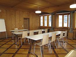 Denkmalgeschützter Holz-getäferter Raum aus dem Jahr 1680. Der stimmungsvolle Raum eignet sich für Kurse, Vorträge, Sitzungen und auch für Bewegung, Yoga etc.